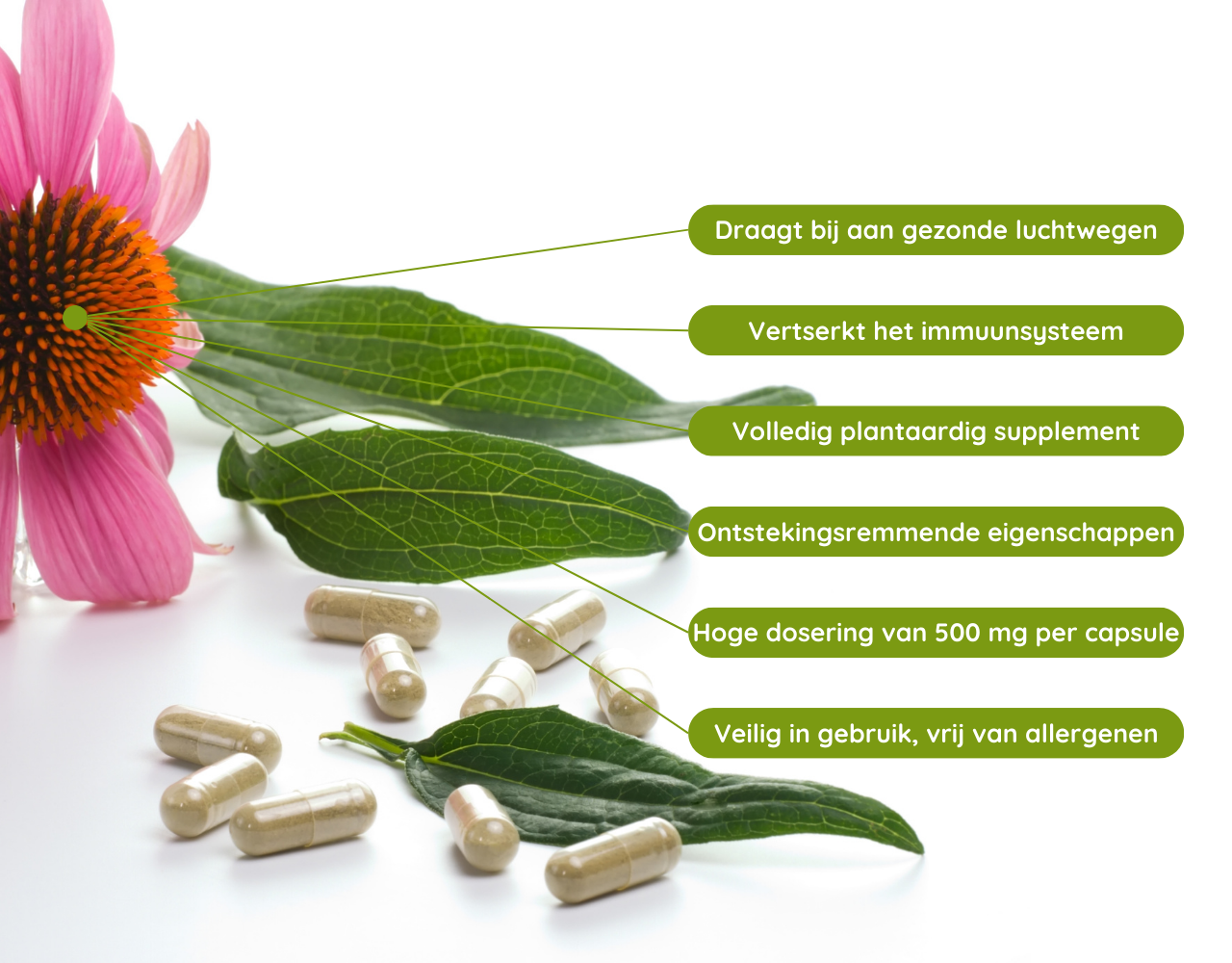 Echinacea 500 mg – Vegan capsules voor weerstand & luchtwegen.