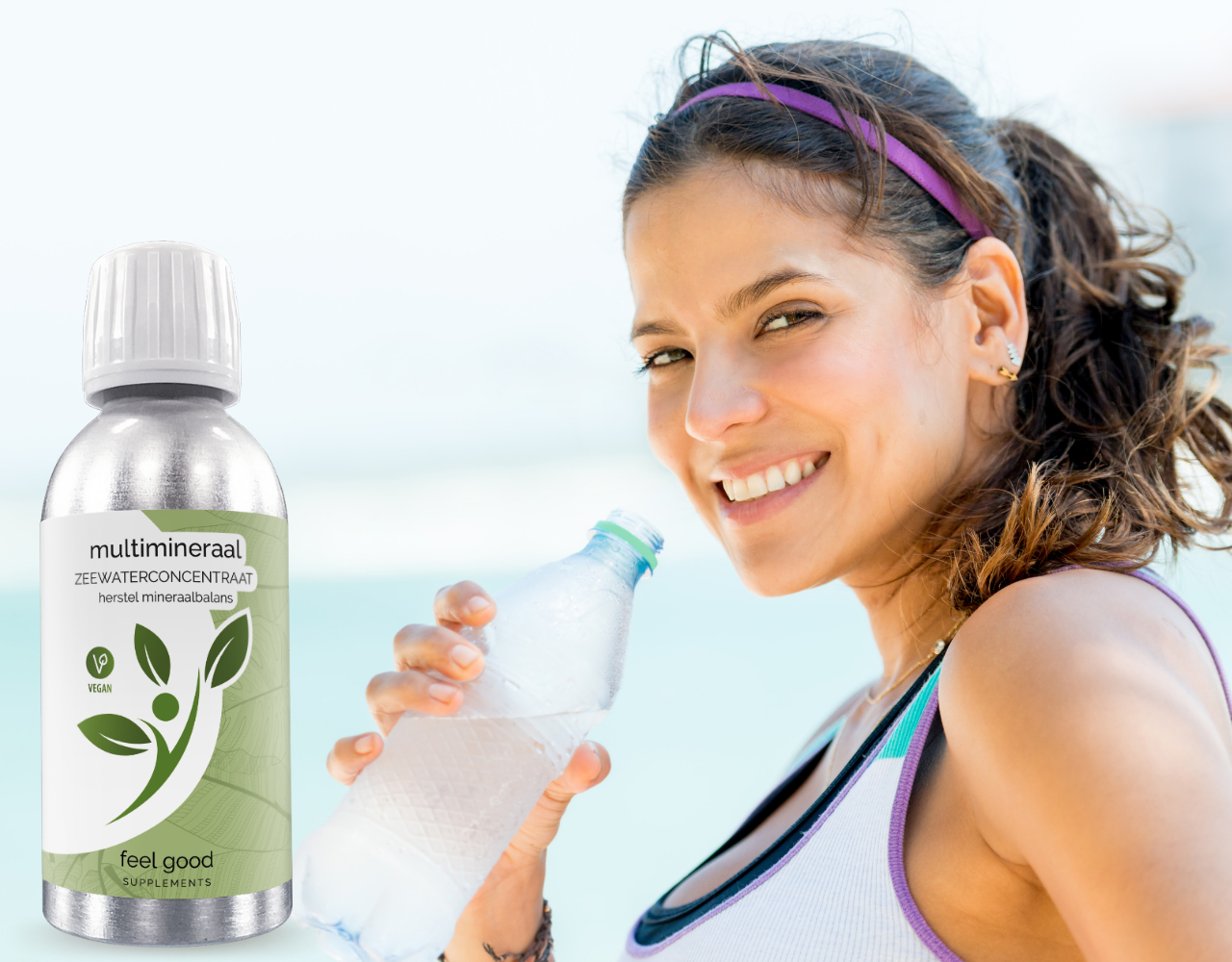 Zeewaterconcentraat met 11 mineralen: ideaal bij actieve dagen, sporten of warm weer.