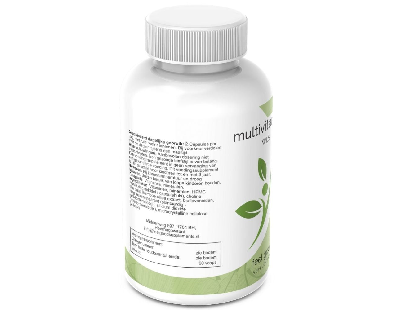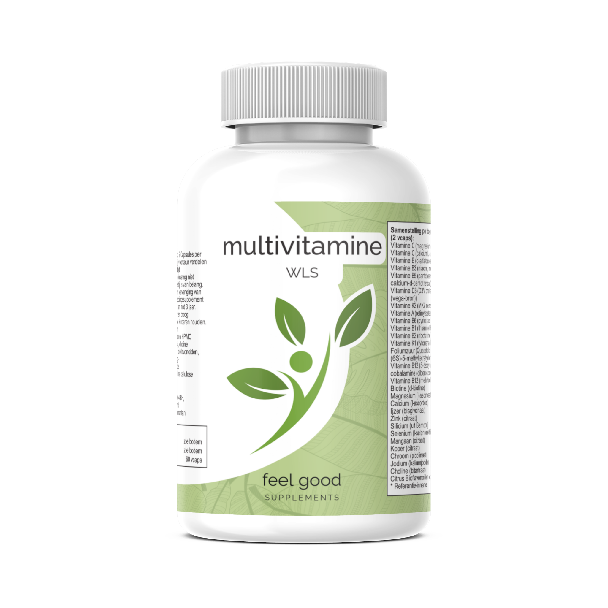 Vitaminen, mineralen, HPMC (verdikkingsmiddel/capsulehuls), choline bitartraat, Bamboe silica extract, bioflavonoiden, magnesium stearaat (plantaardig - antiklontermiddel), silicium dioxide (antiklontermiddel), microcrystalline cellulose (vulstof).